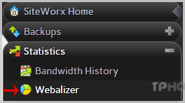 1. Log into your SiteWorx account. (e.g. www.example.com:2443/siteworx/ )2. Under SiteWorx Menu, click the Statistics menu item if it is not already open. 3. Click on the Webalizer option and your Webalizer Statistics will open in a new window.