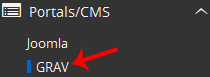 4. On the left side of your screen, you should locate the Portal/CMS category. Click on it and then click on the GRAV link that will appear.