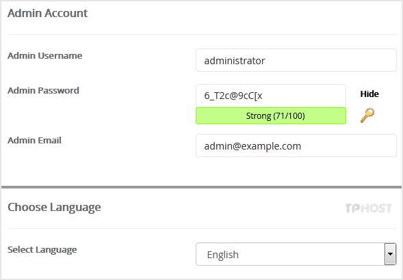 7. Under the Admin Account field, enter the following information: