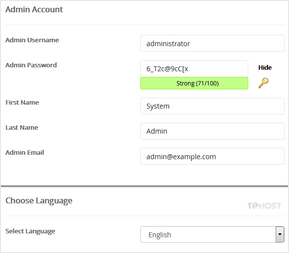 8. Under the Admin Account field, enter the following information: