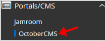 4. On the left side of your screen, you should locate the Portal/CMS category. Click on it and then click on the OctoberCMS link that will appear.